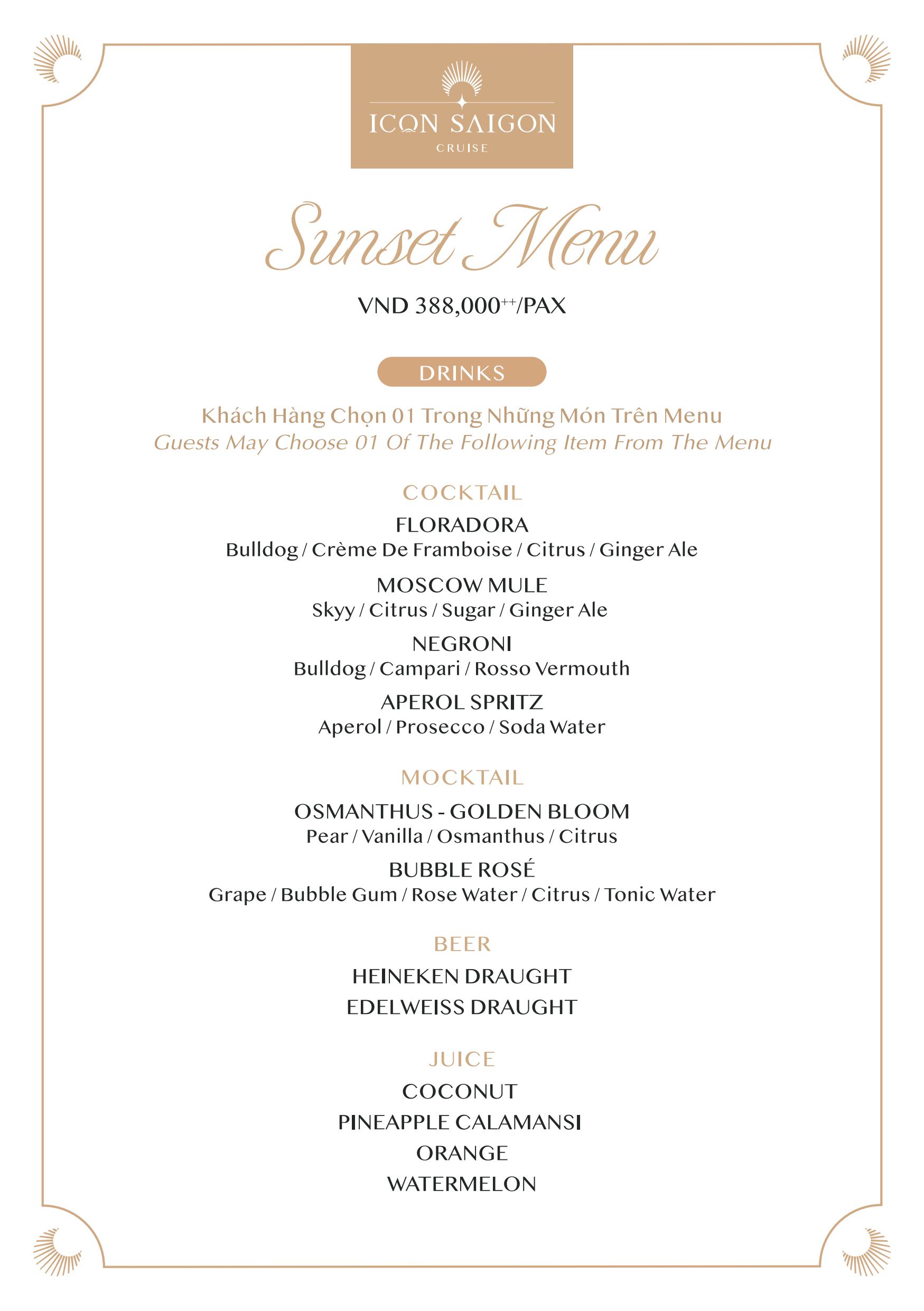 Drinks (Khách hàng chọn 01 trong những món trên menu) & Food